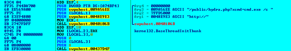 It also installs hydra.php to launch PowerShell from "cmd," and downloads and execute the malware.