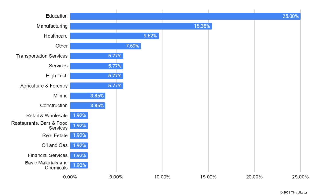 - AvosLocker heavily targeted the education sector – accounting for 25% of their attacks.