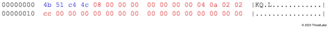 NetMonitor establishes persistence after being installed as a system service, using names such as: NetAppTcp, NetAppTcpSvc, WazuhWinSrv, RSM, WinSSP, WebService, etc. Once initiated, NetMonitor tries to contact its C2 server every 5 seconds using a hardcoded IP address and port (usually 443). The malware uses raw sockets and a small binary protocol for all communication, where the encrypted ping packet contains content similar to that shown in Figure 9.