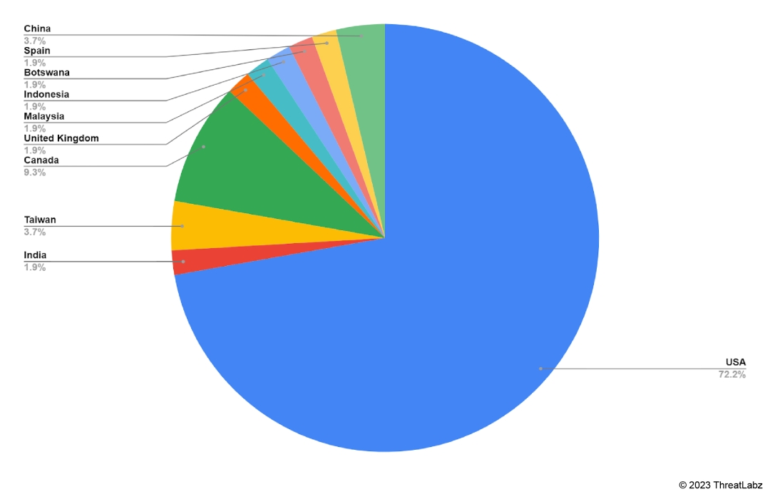 Figure 2: Breakdown of victims by country breached by AvosLocker