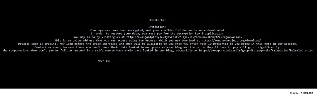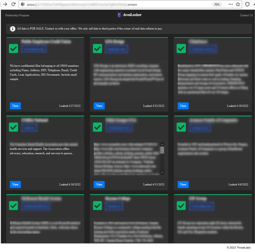 - AvosLocker hosted a data leak site from July 2021 to July 2023, where they would add stolen proprietary data unless a ransom was paid.