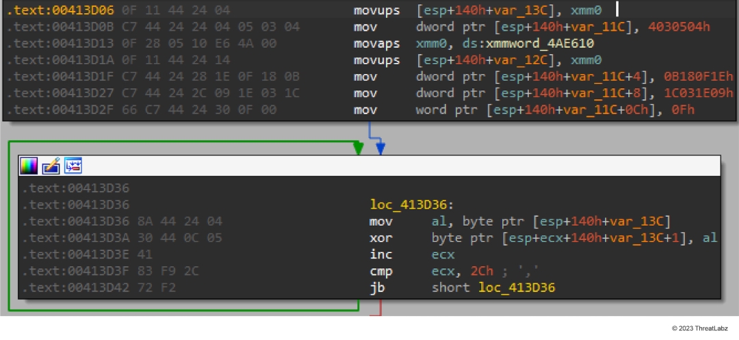 All the important strings in AvosLocker ransomware samples are obfuscated using ADVObfuscator,which pushes encoded versions of strings to the stack, and then decodes them at runtime (as shown in Figure 8), using simple but different algorithms and keys.