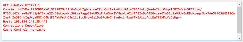 C2 communications is via HTTP requests. An example request looks like Figure 3: