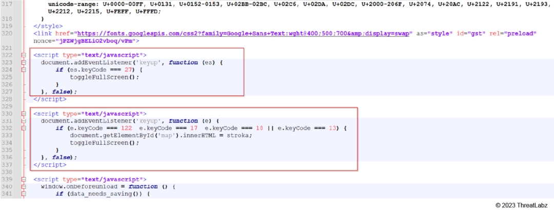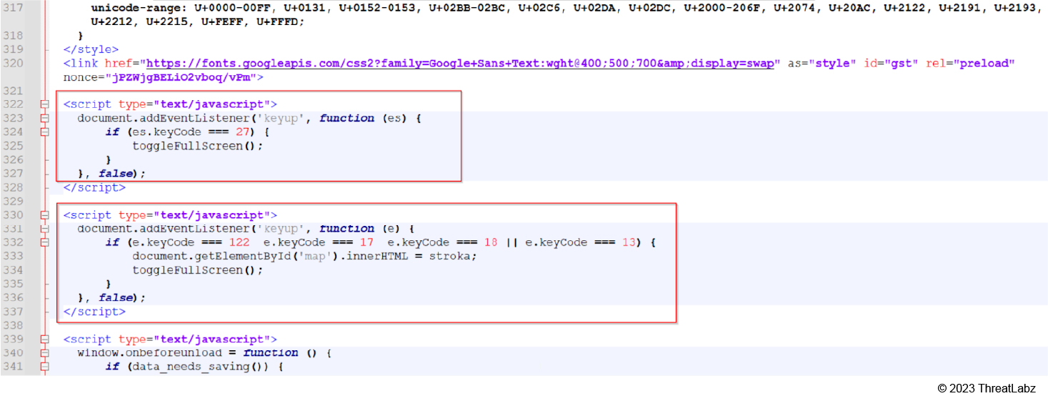 Figure 3: Screenshot of JavaScript code disabling features.