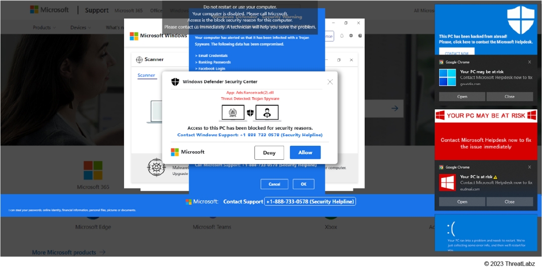 The Zscaler ThreatLabz team recently observed a surge in tech-support scams, with a noteworthy focus on the utilization of Windows Action Center notifications to display misleading warning messages to users. While the majority of tech-support scams previously centered around counterfeit notifications related to Windows Defender, scammers have since expanded their tactics to include bogus web pages impersonating other security providers like McAfee and Avast.