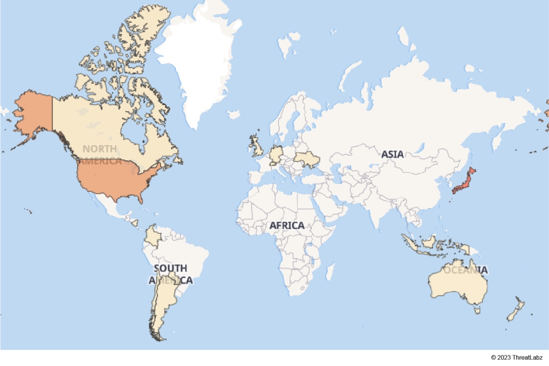 This tech-support scam campaign primarily targeted users from Australia, Canada, Japan, and the United States.