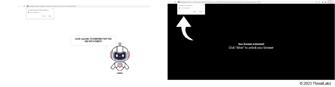 Figure 8: A page asking a user to allow notifications and prove they are not a robot