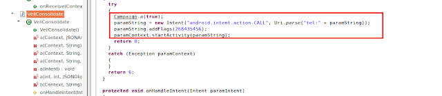 The malware also has calling functionality. In the example below, the number to be called was sent from the C&C server in the encoded manner seen here.