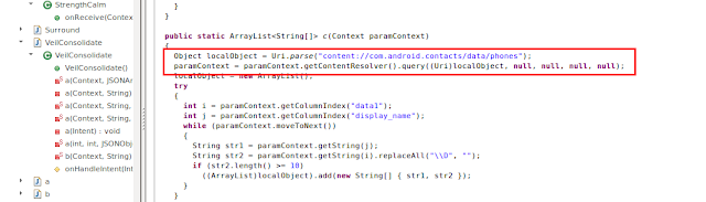 | Fig 9: The app stealing contacts |