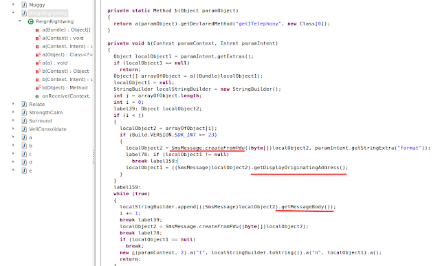 Upon further analysis, we also found the spyware to be stealing SMS messages from the victim's device. This functionality could also be used to steal bank-related one-time-password codes and other relevant information. The screenshot below shows this functionality in action:
