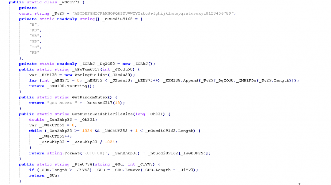 There is a small code section in this .NET binary that has a code overlap with the QuasarRAT. The overlap is only with the StringHelper class of the QuasarRAT.