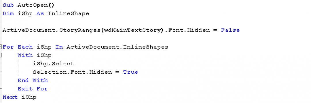 The relevant macro code section, which unhides the image after macros are enabled, is shown in Figure 8.