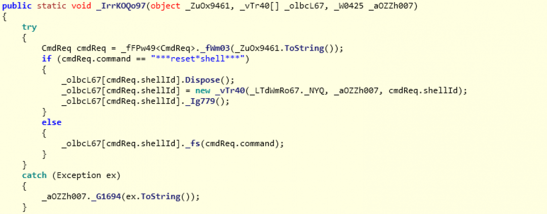 The final .NET payload, to the best of our knowledge, has not been observed in the wild before. It has a small code section in it that overlaps with the QuasarRAT. However, this code was not used at runtime. We have assigned the name - ShellReset to this RAT based on the unique strings found inside the final payload.