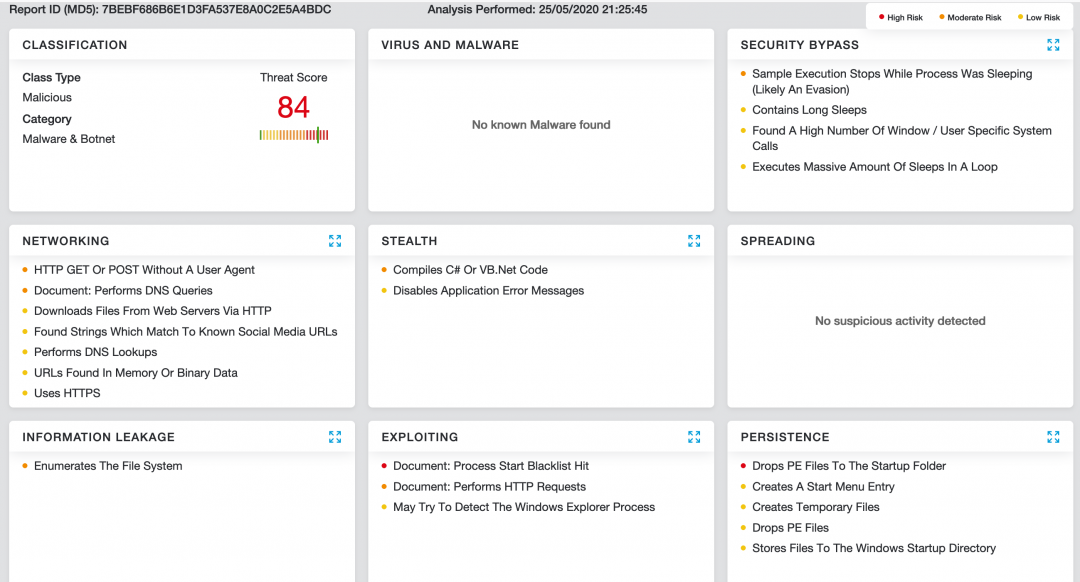 For the purpose of analysis, we will take the file with MD5 hash: 7bebf686b6e1d3fa537e8a0c2e5a4bdc