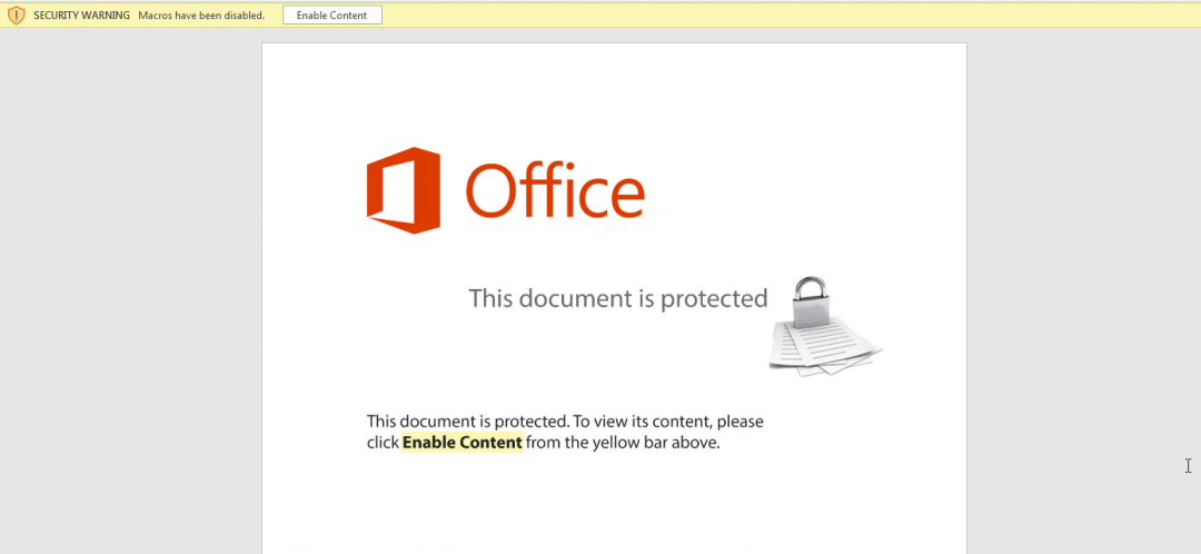 When the macro-based document is opened, it will display a message that asks the user to enable macros to view the contents as shown in Figure 7.