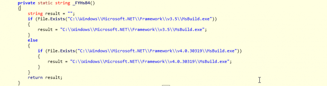 2. For compiling the C# code, it uses msbuild.exe. The versions of .NET framework checked on the machine to find msbuild.exe are version 3.5 and 4.0.x as shown in Figure 13.