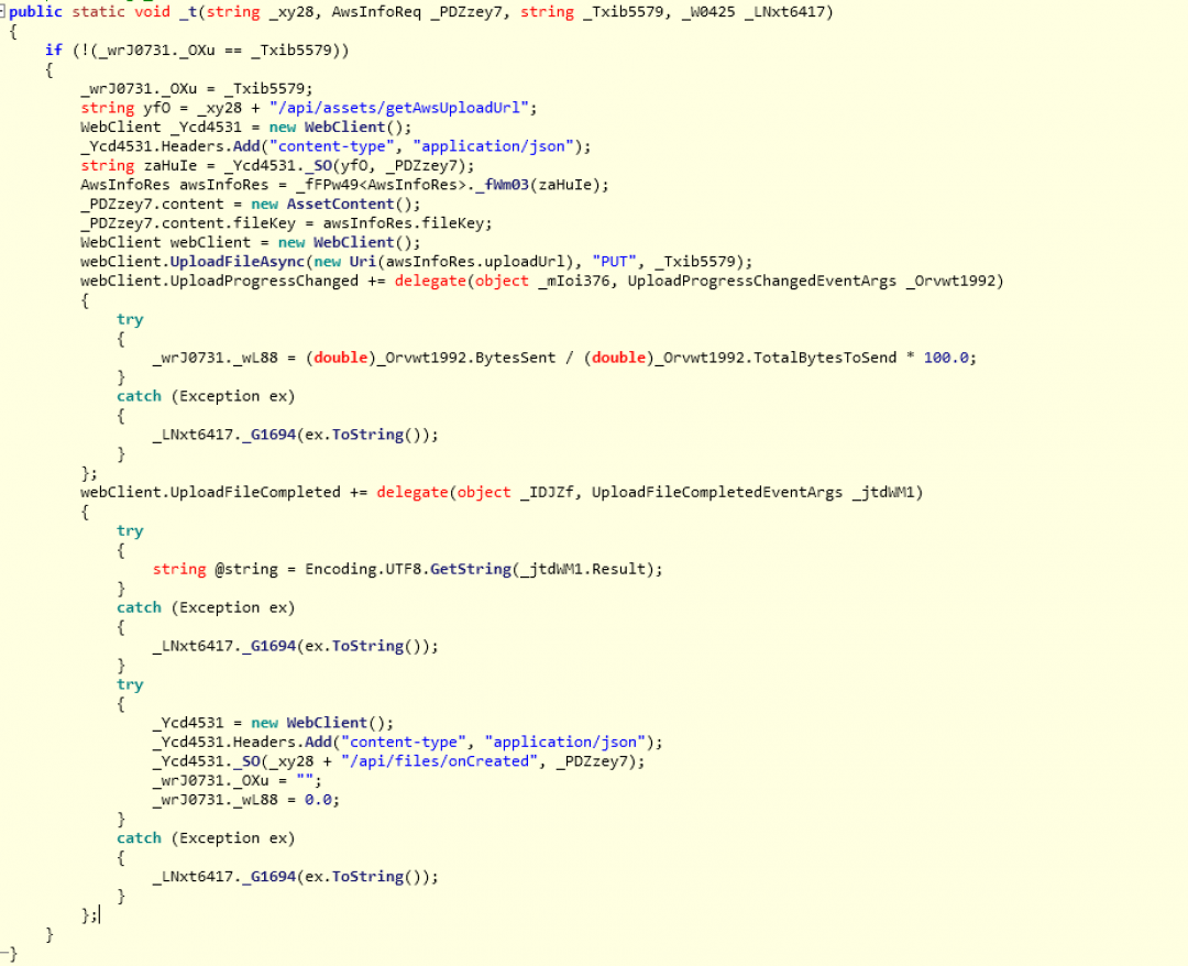 Figure 21: The subroutine that handles the uploadFile C&C command.