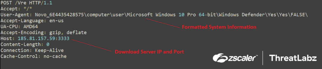 - The final Snip3 RAT loader is downloaded from the server along with the corresponding user-agent containing system information