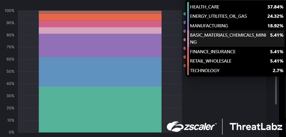ThreatLabz has observed multiple Snip3 campaigns in the Zscaler Cloud targeting a variety of industry verticals. Healthcare emerged as the most targeted sector as shown in the graph below. Other targeted sectors include energy, manufacturing, materials, finance, retail, and technology. Organizations across these sectors should remain vigilant and deploy advanced security measures to protect against Snip3 Crypter and other such threats.