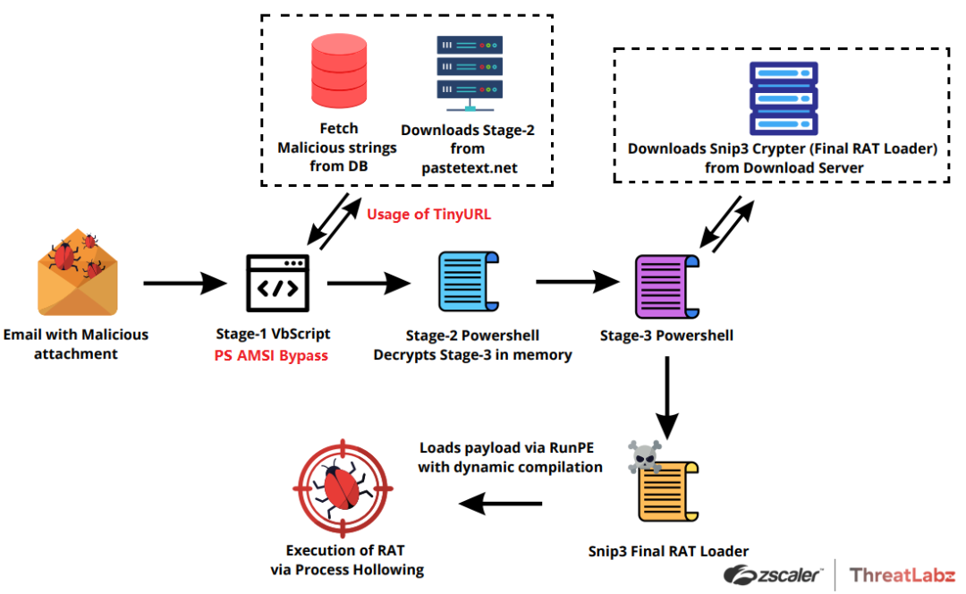 Zscaler ThreatLabz researchers observed multiple threat campaigns utilizing the Snip3 crypter, a multi-stage remote access trojan (RAT) loader with new TTPs and available since 2021 as a crypter-as-a-service offering.