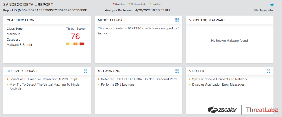 Figure 41: The Zscaler Cloud Sandbox successfully detected the crypter