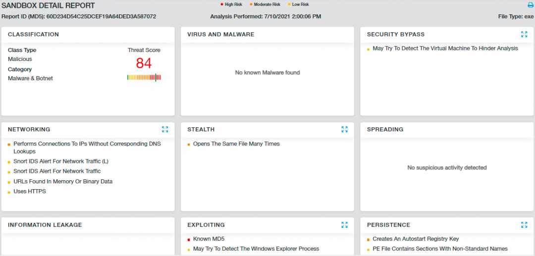 In addition to sandbox detections, Zscaler’s multilayered cloud security platform detects indicators at various levels