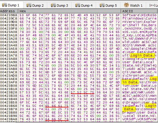 - Stolen information is sent using a proxy server in obfuscated form using the api WinHttpGetIEProxyConfigForCurrentUser() to command and control server 66[.]42.43.177:443