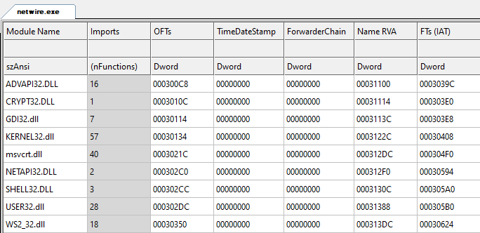 During our analysis, we found that the malware extracts malicious code into the memory and executes it to evade antivirus detection. During static analysis, we have found that the malware is using some important libraries such as WS2_32 library to perform network activity.
