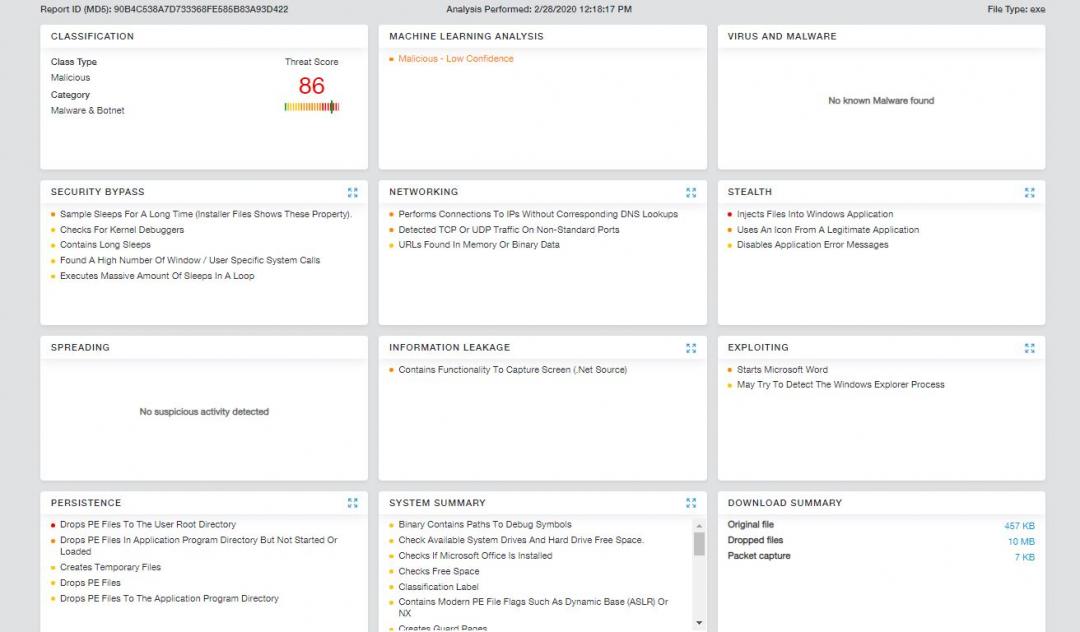 In 2016, the Crimson remote-access trojan (RAT) made headlines when it was found to be used against Indian diplomatic and military resources in an advanced persistent threat (APT) attack called “Operation Transparent Tribe.” Since then, Crimson RAT has been favored by threat actors for targeted attacks on organizations in the financial, healthcare, and space technology sectors. A recent blog post described how the APT36 group used the coronavirus outbreak to lure users into opening a fake health advisory which, upon execution, infected their devices with the Crimson RAT. The Zscaler ThreatLabZ team observed similar tactics in our logs affecting Indian financial institutions.