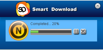 If the Norton option was selected, an icon for an app called Smart Wrapper appears in the taskbar. Opening this app from the taskbar shows the Smart Download status window, depicting the status of the Norton download.