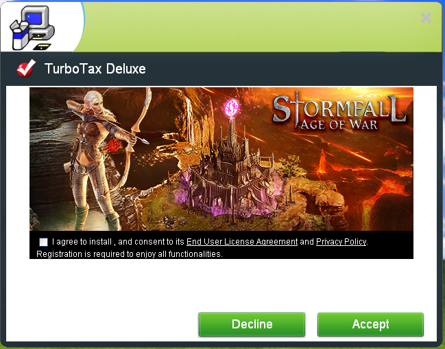 Besides promising TurboTax, one of the fake "installer" packages we found also offers to install Norton and a free-to-play MMO called StormFall.