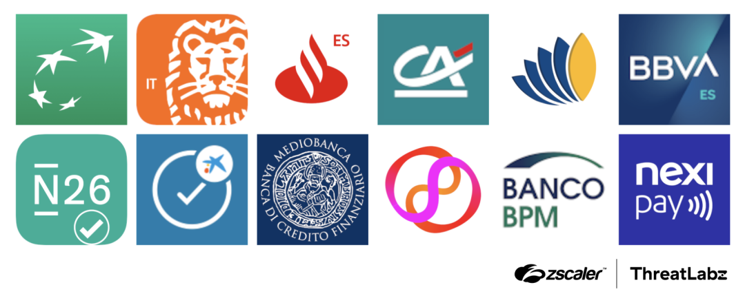 Figure 1: Logos of financial institutions impersonated by Copybara.