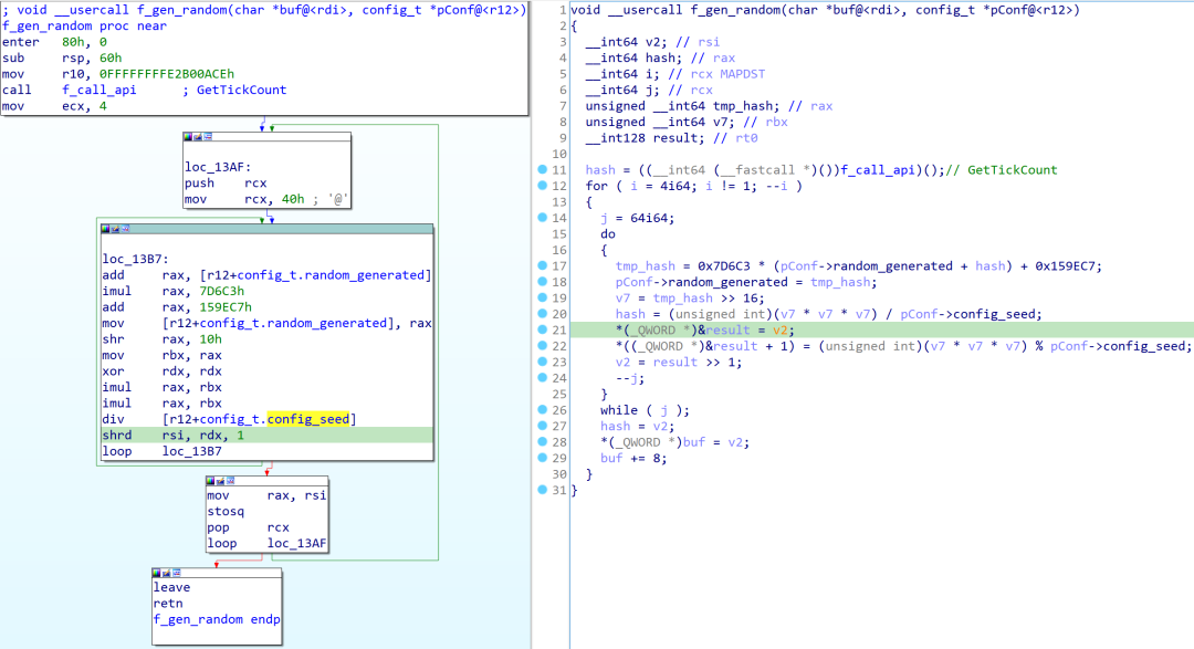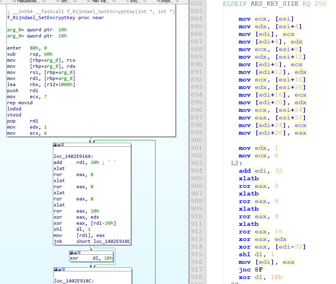 Some parts of the malware look directly written in assembly. The most noteworthy thing is the use of a specific implementation of AES-CBC shown in Figure 2.