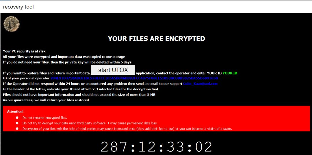 - Crytox drops the uTox messenger application on the infected system that enables the victim to communicate and negotiate with the threat actors
