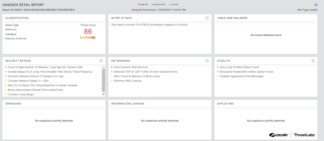 The Zscaler Cloud Sandbox has consistently detected this campaign with high accuracy. Zscaler ThreatLabz will continue to monitor and track both PureCrypter and DarkVision RAT, sharing any new findings with the wider security community.