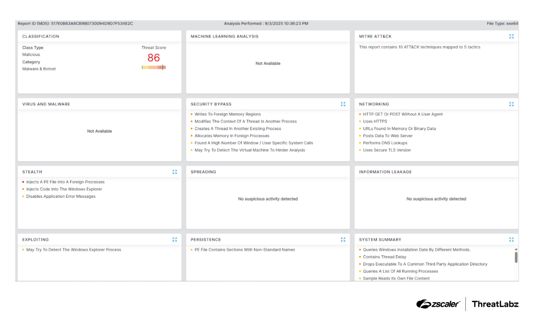 - Zloader continues to evolve its anti-analysis strategies, leveraging innovative methods to evade detection.
