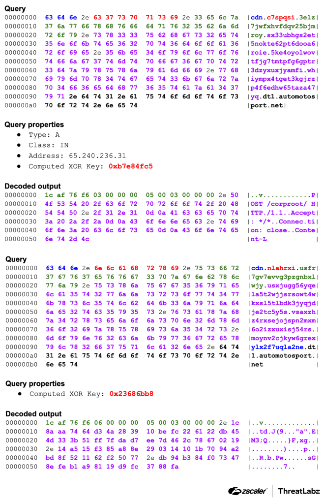 return resultThe examples in the figure below show the final structure and decoded outputs of the DNS requests: