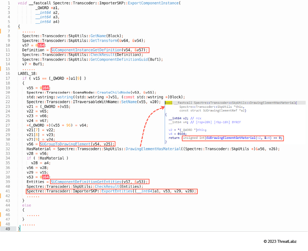 Throughout our reverse engineering process, we successfully analyzed all of the relevant functions involved in parsing SKP files within the Office 3D component. In particular, we discovered Microsoft leveraged a series of SketchUp C APIs to implement the functionality to parse an SKP file.