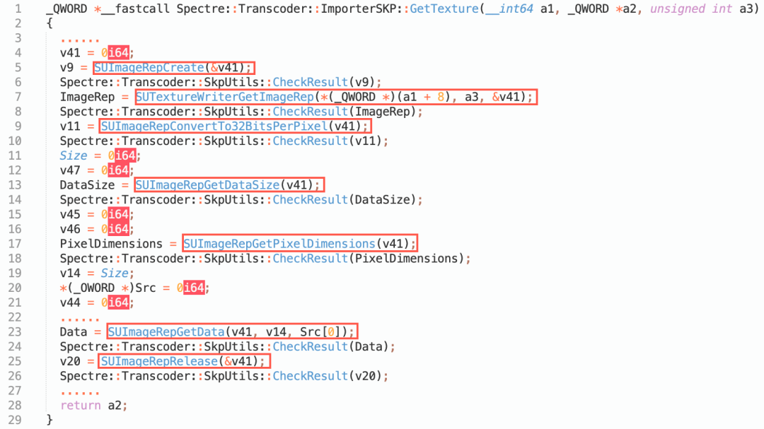 7. Spectre::Transcoder::ImporterSKP::GetTexture (Shown in Figure 15)