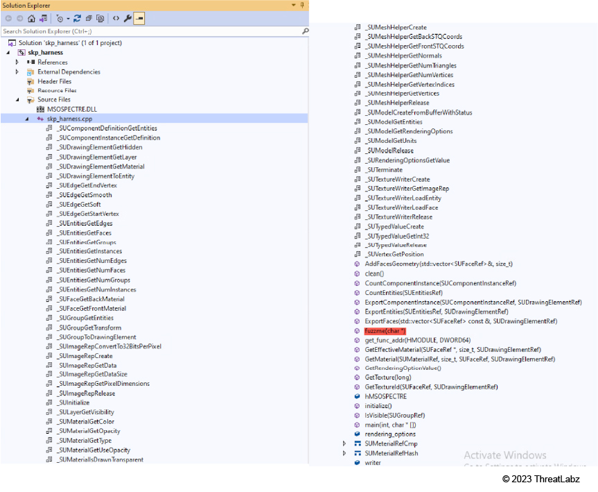 Now, we’ll explore how to develop a harness for fuzzing the Office 3D component MSOSPECTRE.DLL. Figure 18 provides an overview of the source code of our SketchUp harness.