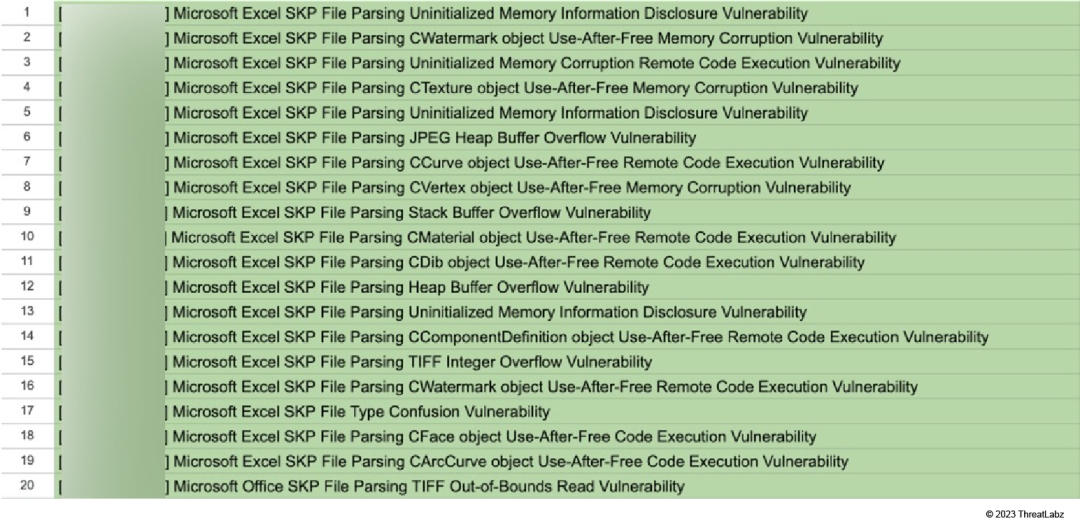 Figure 21: Vulnerabilities discovered by ThreatLabz through SketchUp harness