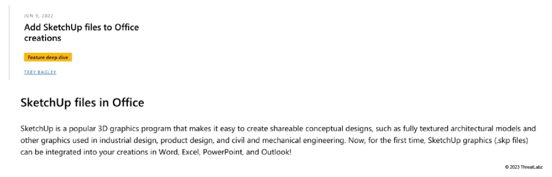 In June 2022, Microsoft officially announced the integration of SketchUp file support into their Office applications for both Windows and Mac platforms as shown in Figure 3.