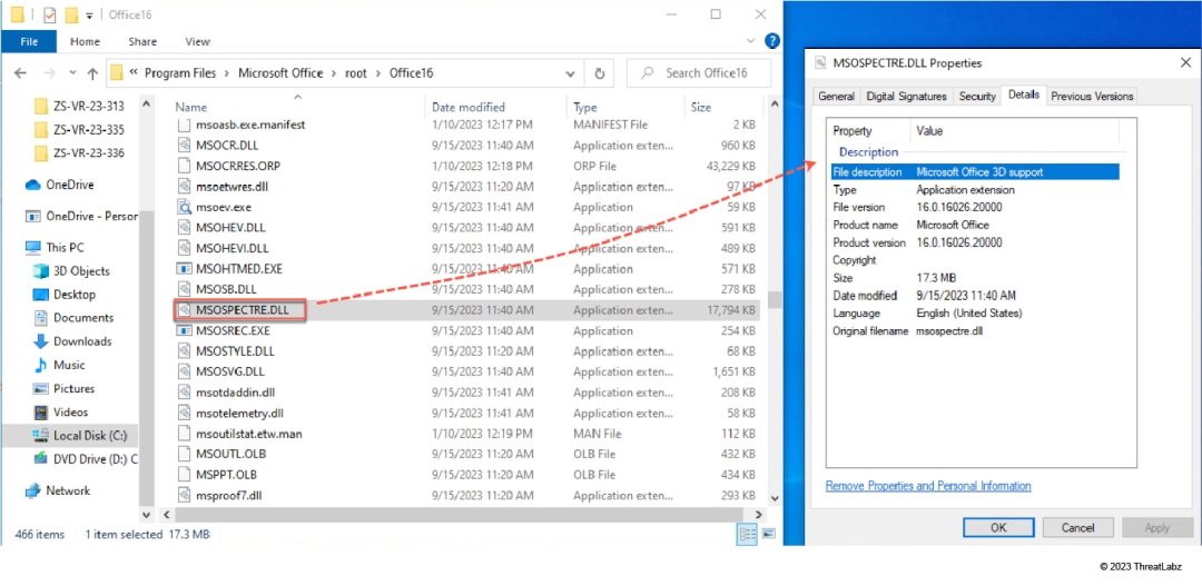 Figure 5: MSOSPECTRE.DLL is responsible for parsing 3D file formats in Microsoft 365 apps