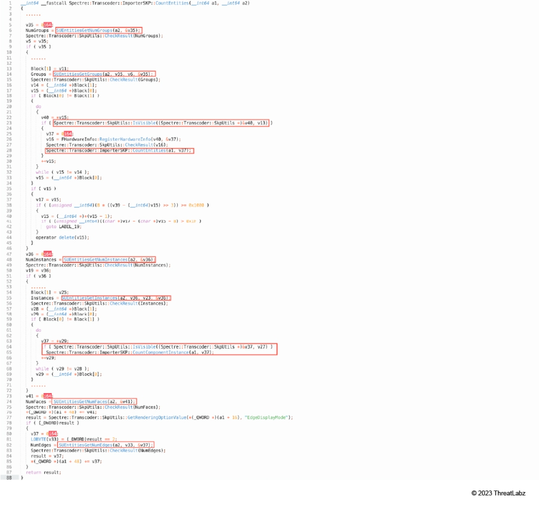 1. Spectre::Transcoder::ImporterSKP::CountEntities (Shown in Figure 8)