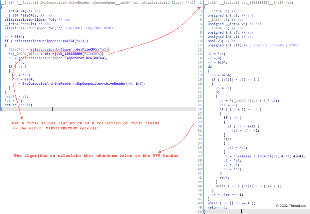 6. Finally, we need to re-calculate the checksum in the VFF header. We uncovered a specific algorithm responsible for computing this checksum. Figure 6 shows a pseudo-code representation of this algorithm.