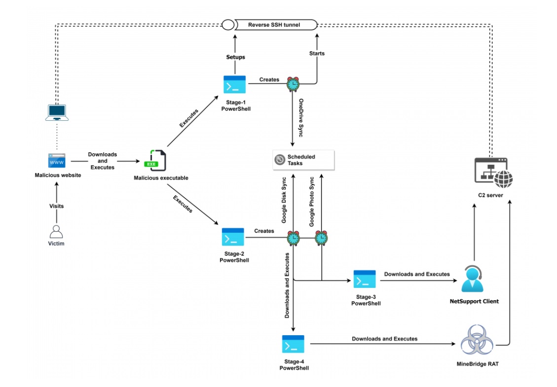 We discovered that the threat actors are now distributing MineBridge RAT through Windows Installer binaries, masquerading as trading applications. The different stages in this sophisticated attack chain leverage Windows scheduled tasks, PowerShell scripts, reverse SSH tunnels, legitimate binaries such as TeamViewer, and shortened URLs that ultimately lead to the MineBridge RAT execution.
