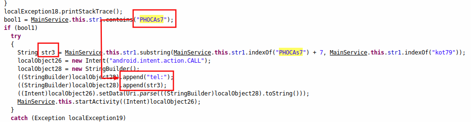 | PHOCAs7 | Call phone numbers sent by the C&C server |