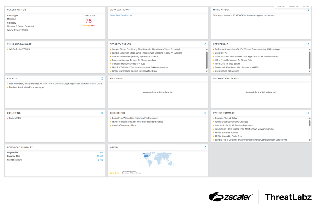 Figure 8: Zscaler Cloud Sandbox report for TOSHIS loader.